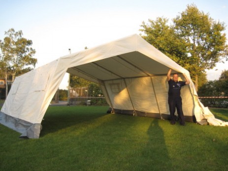 Größe 4 x 4 m. Das Zelt ist in sehr kurzer Zeit einsatzbereit. Es kann bei den verschiedensten Gelegenheiten eingesetzt werden. Von der Umkleidekabine für die Taucher bis hin zu einem Überstand, der über ein havariertes Fahrzeug gestellt wird.