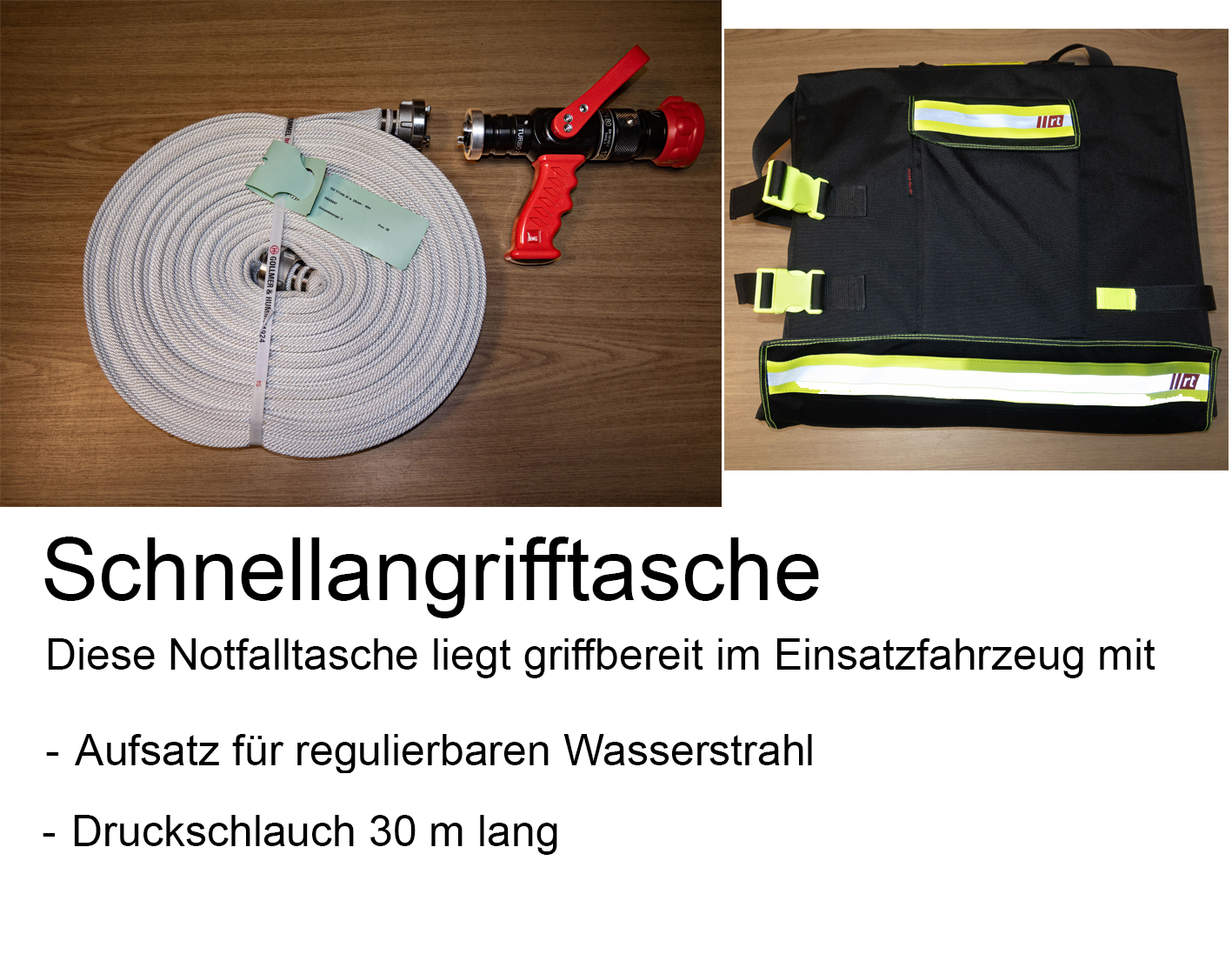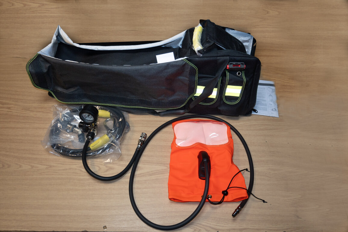 Tauchpumpe mit ZubehörBei der Tauchpumpe handelt es sich um Zusatzbeladung. So eine Pumpe kann zusätzlich zu den Feuerwehrpumpen eingesetzt werden. Sie ist durch die Größe sehr handlich und effektiv, zum Beispiel bei einem Wasserschaden im Keller.